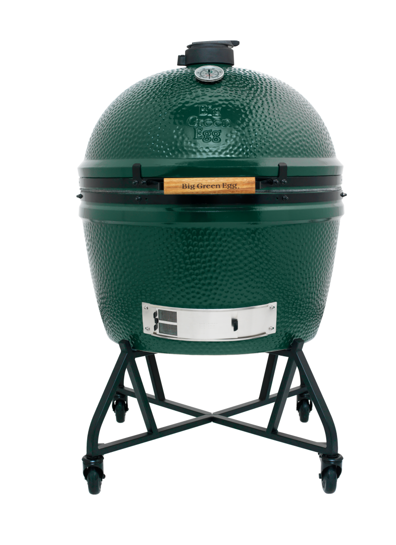 Eleganz und Intelligenz vereint in einem einzigen robusten Produkt beweisen sofort, dass der intEGGrated Nest+Handler eine typische Erfindung von Big Green Egg ist. Ein pulverbeschichtetes Stahlgestell mit stabilen Griffen, mit denen sich das EGG überall hinrollen lässt: an einen windgeschützten Platz, in den Schatten oder kurz in die Garage. Unebener oder rauer Untergrund? Kein Problem für die vier Schwenkräder, von denen zwei mit Bremsen ausgestattet sind. Während des Transports bleibt das EGG fest in seinem Nest stehen und die Griffe bleiben kühl, auch wenn das EGG warm ist. Dieses perfekt integrierte Duo ist nach den typischen EGG-Formen gestaltet worden.
